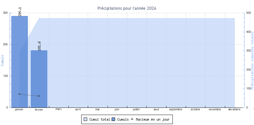 - Pluviomètrie mensuelle la plus élevée : 290.1 mm