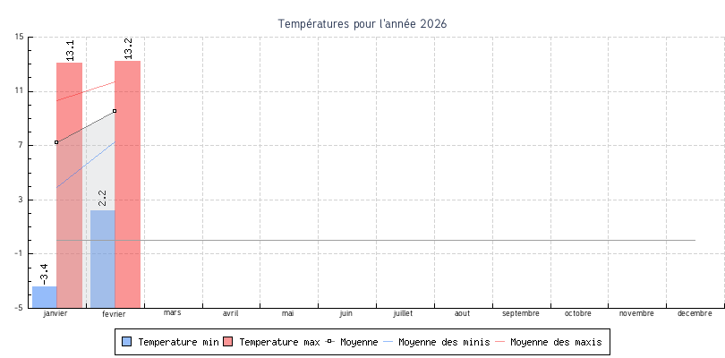 - Température maximale absolue : 13.2 °C le 7 fevrier