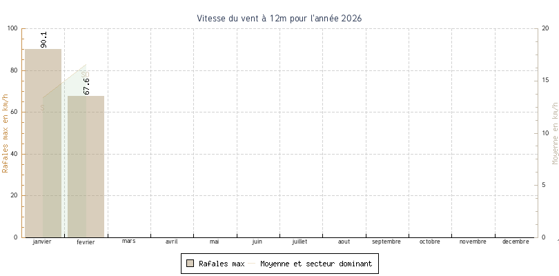 - Rafales la plus élevée à 12m : 90.1 km/h