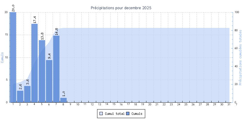 - Pluviomètrie maximale en une journée : 10.6 mm le 9