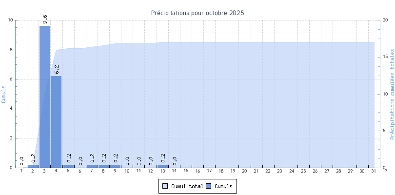 - Pluviomètrie maximale en une journée : 9.6 mm le 3