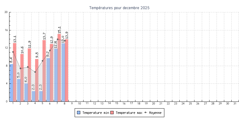 - Température minimale absolue : 6.4 °C le 8 à 7:42